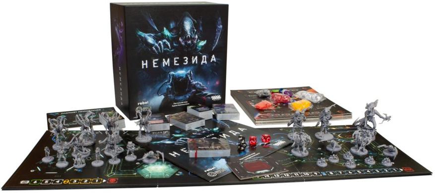 Пришло время для самой обсуждаемой и нашумевшей игры 2020 года. «Немезида» – масштабная игра в сеттинге космических триллеров, навеянных фильмами о чужих. Команда из 1-5 игроков просыпается после гибернационного сна, и понимает: что-то пошло не по плану. Корабль остановился, и чтобы вернуться на Землю, необходимо вручную устранить проблему. Задача не тривиальная, но вполне решаемая, если бы не инопланетные монстры, которые пробрались на звездолет. Игроки перемещаются по отсекам, устраняя неисправности и выполняя свои собственные скрытые цели. Но стоит одному оступиться, как на шум сбегаются пришельцы. И если с обычными монстрами справиться не так уж и сложно, то встреча с охотником или королевой может стать последней. Дополняют атмосферу ужаса детальные миниатюры, которые можно раскрасить по собственному вкусу.