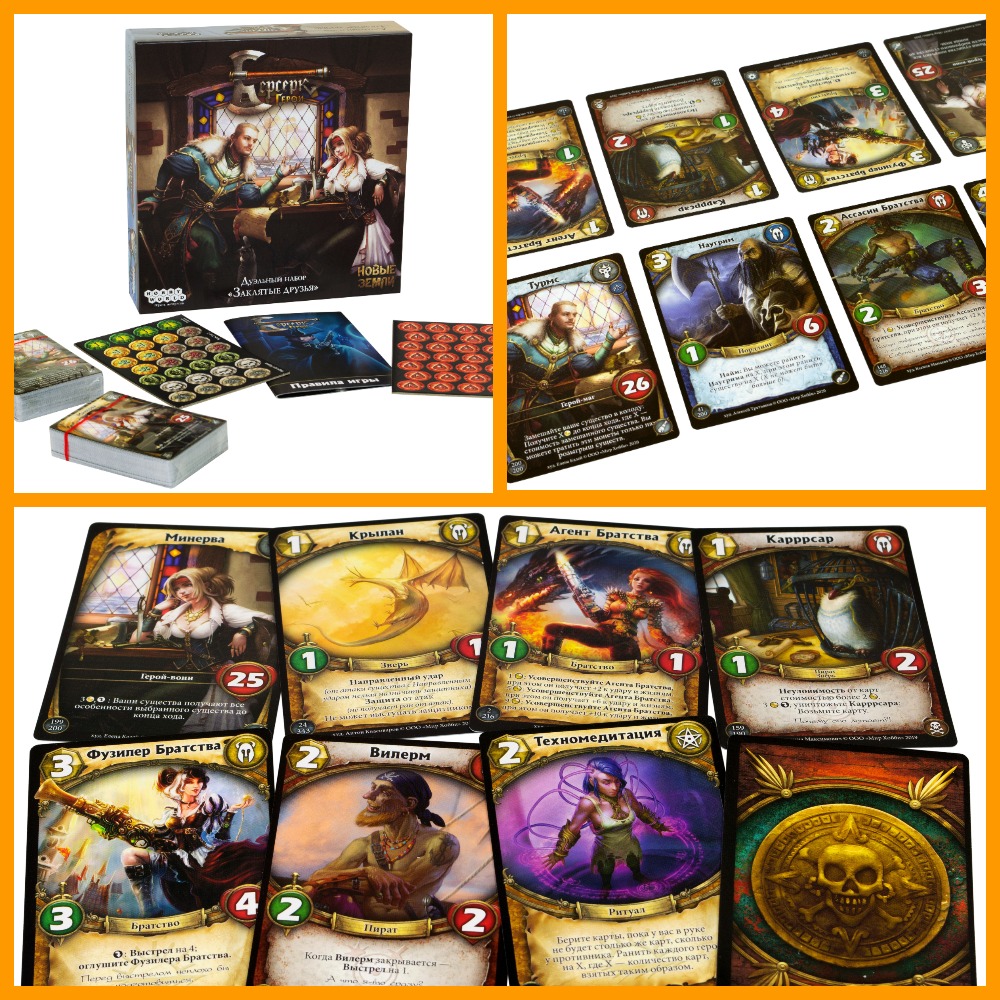 «Берсерк. Герои» – это игра в популярном сейчас жанре ККИ. Двое игроков примеряют на роль легендарных персонажей, которые в ожесточенной схватке пытаются лишить друг друга всех хитпоинтов. Для победы, необходимо вызывать на стол созданий, применять могущественные заклинания, а также использовать дополнительные уловки — карты поддержки. Выпуск «Заклятые друзья» — один из многих в этой увлекательной вселенной, посвященный паре героев, положивших свою дружбу на алтарь амбиций. Данный комплект подойдет как новичкам, так и матерым игрокам, которые смогут дополнить свою колоду с помощью новых карт.
