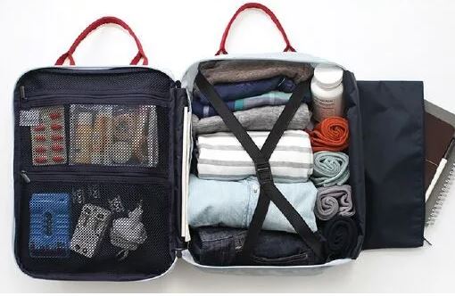Внутри предусмотрена сетчатая перегородка, которая помогает организовать вещи, а ремни надежно удерживают одежду на месте, не позволяя ей мяться.