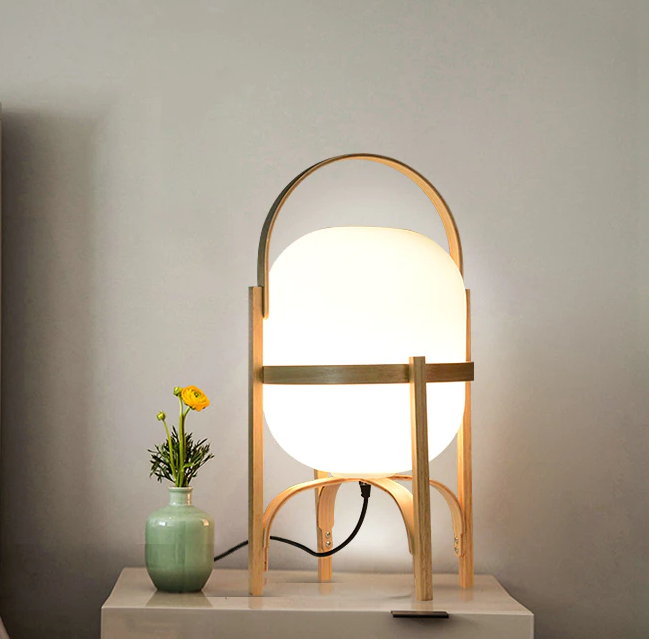 Для любителей более строгих решений есть настольная лампа из натурального дерева и стекла. Лампа выполнена в современном стиле, оснащена ручкой для переноски и патроном Е27 с комплектной лампочкой.