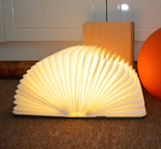 Довольно необычный ночник, выполненный в виде обычной книги. Для его включения достаточно раскрыть книгу, а благодаря возможности раскрытия на 180 градусов, лампа легко сможет использоваться на прикроватной тумбе.