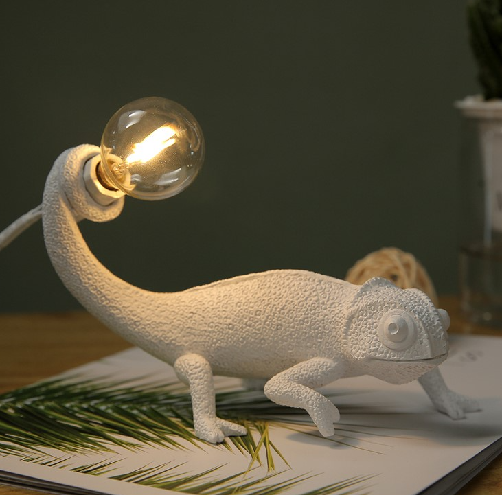 Необычный светильник в форме хамелеона, у которого присутствует патрон в обхвате хвоста. Выглядит как минимум необычно и легко украсит любой стол, прикроватную тумбу или любое другое место. Так же предусмотрены настенные крепления для создания более антуражной обстановки.