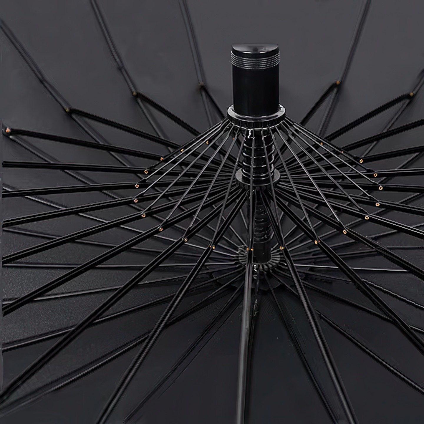 Создатели этого зонта подошли к проблеме ветроустойчивости с диаметрально противоположной стороны, установив рекорд по количеству спиц — 72 штуки, каждая — с сердечником из нержавеющей стали, собранные в 12 групп пакетами «4+2». Подход может показаться грубоватым, но эффективность впечатляет — зонт действительно невозможно вывернуть.