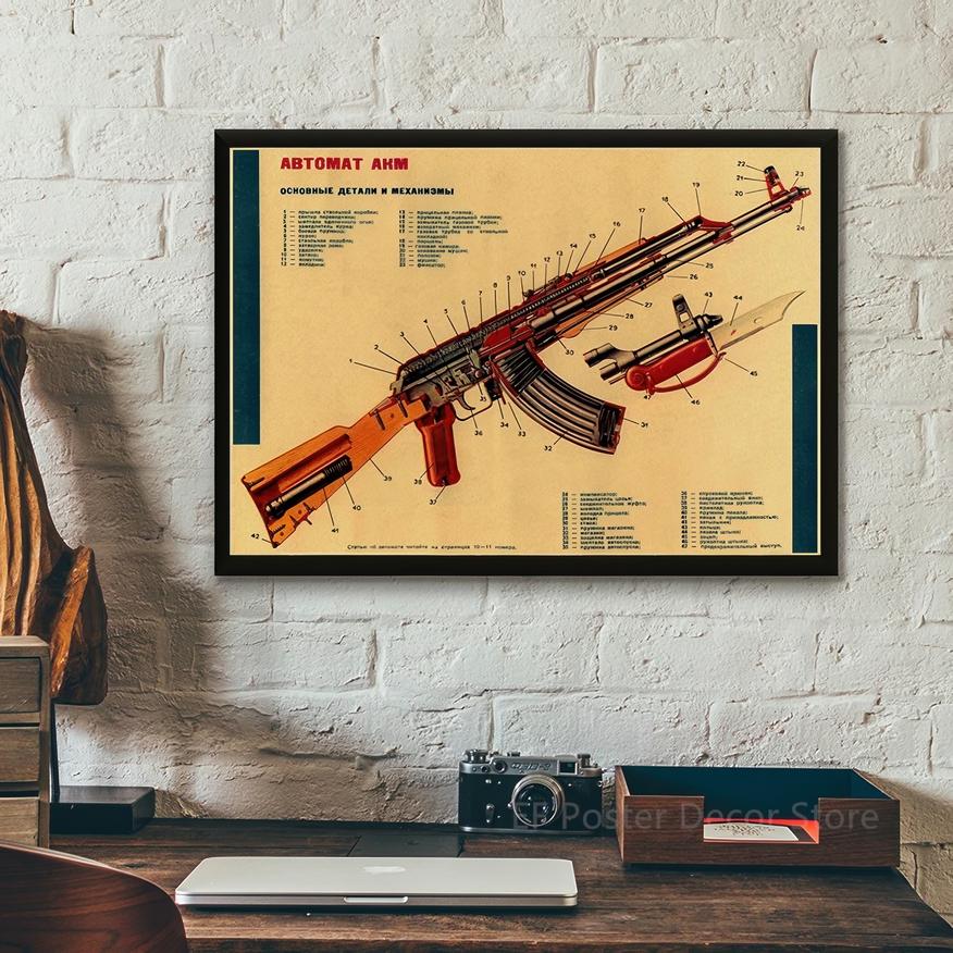 Каждый плакат демонстрирует уникальный подход к изображению оружия: энциклопедические иллюстрации привлекают отсутствием подписей, а советские постеры подкупают своей монументальностью и детализмом.