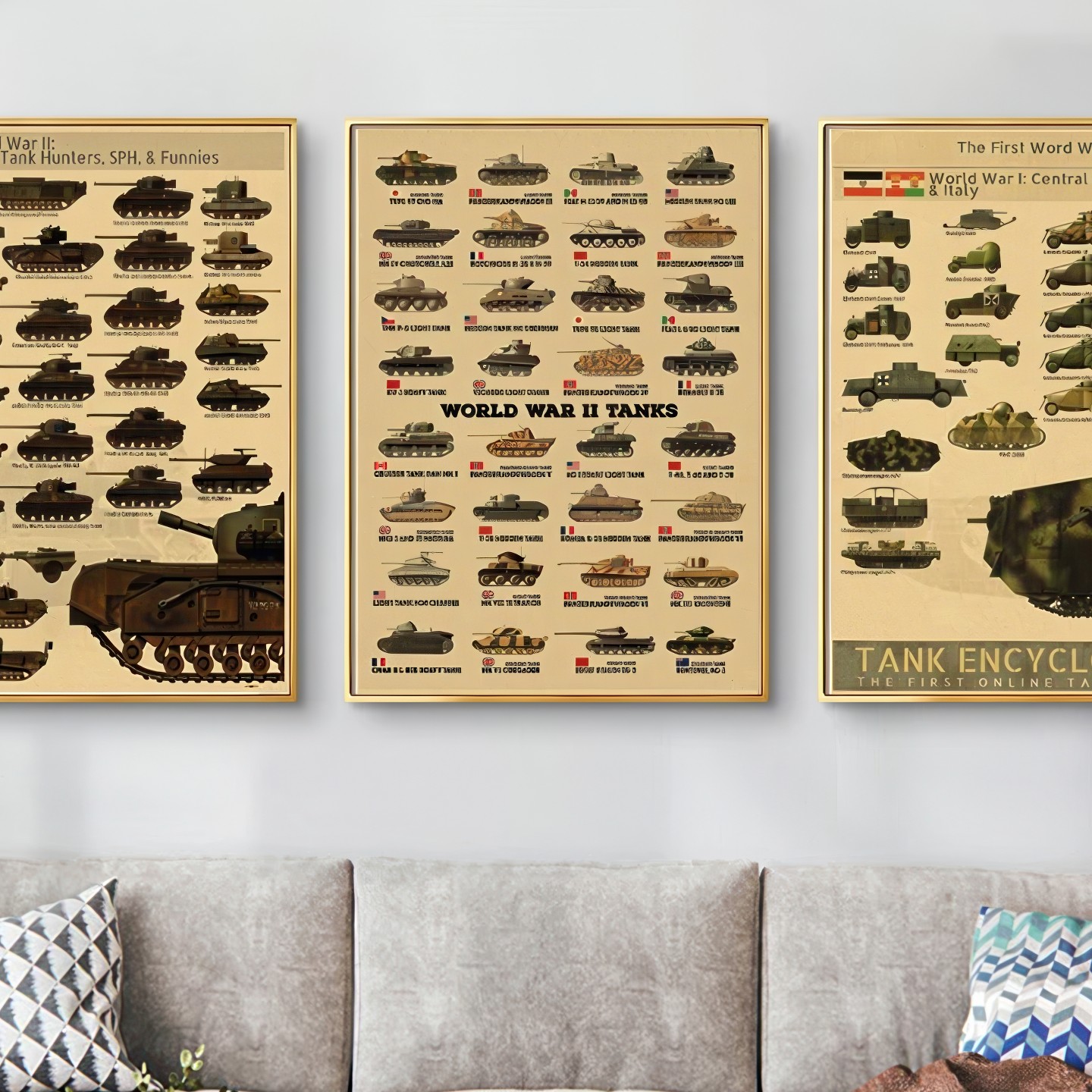 Двадцать один постер посвящён истории бронетехники — от периода между мировыми войнами до современности. Каждый плакат — тщательно проработанная подборка танков разных стран и эпох, от Интербеллума до начала XXI века. Примечательно, что создатели, как ни удивительно для китайского маркетплейса, смогли избежать грубых фактологических ошибок, что делает коллекцию интересной не только визуально, но и познавательно.
