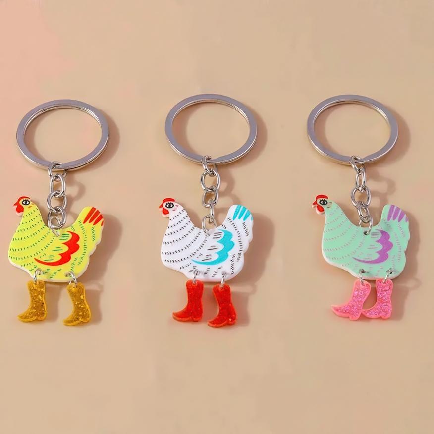 Этот брелок представляет собой оригинальное решение — плоского петуха с подвижными лапами на колечках. В наличии три варианта раскраски, каждый со своим характером: от традиционного деревенского петушка до почти сказочного персонажа.