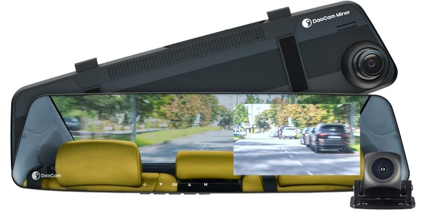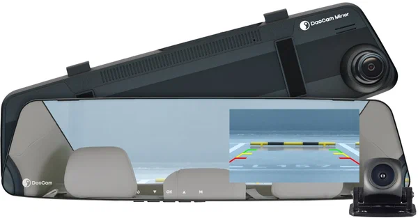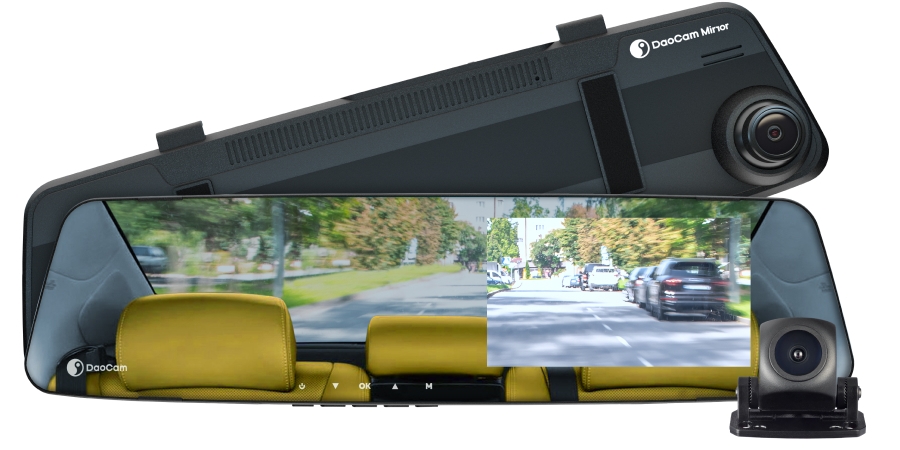Устройство оснащено двумя камерами (задняя с кабелем 6 м, передняя с регулировкой подвижного объектива), которые обеспечивают запись видео с высоким разрешением как спереди (1920x1080 с широким углом объектива 150°), так и сзади автомобиля (в разрешении HD). Благодаря встроенному модулю Wi-Fi, вы можете управлять Daocam Mirror через мобильное приложение и просматривать записанные видео на вашем смартфоне или планшете.