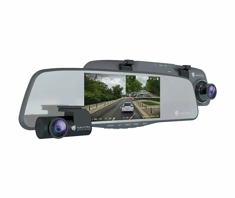 Модель с двумя камерами от компании Navitel (известна навигаторами), NV в названии расшифровывается как Night Vision (сделан упор на качественную ночную съемку). И при покупке даются ваучер на лицензированное использование фирменной программы Навител Навигатор. В устройстве используется процессор MSTAR MSC8339 и светочувствительный сенсор GC2053, причем в двух камерах. Съемка спереди идет с разрешением 1920x1080 при угле объектива 160°. IPS экран с диагональю 5″ и разрешением 960x480 точек расположен по центру зеркала.