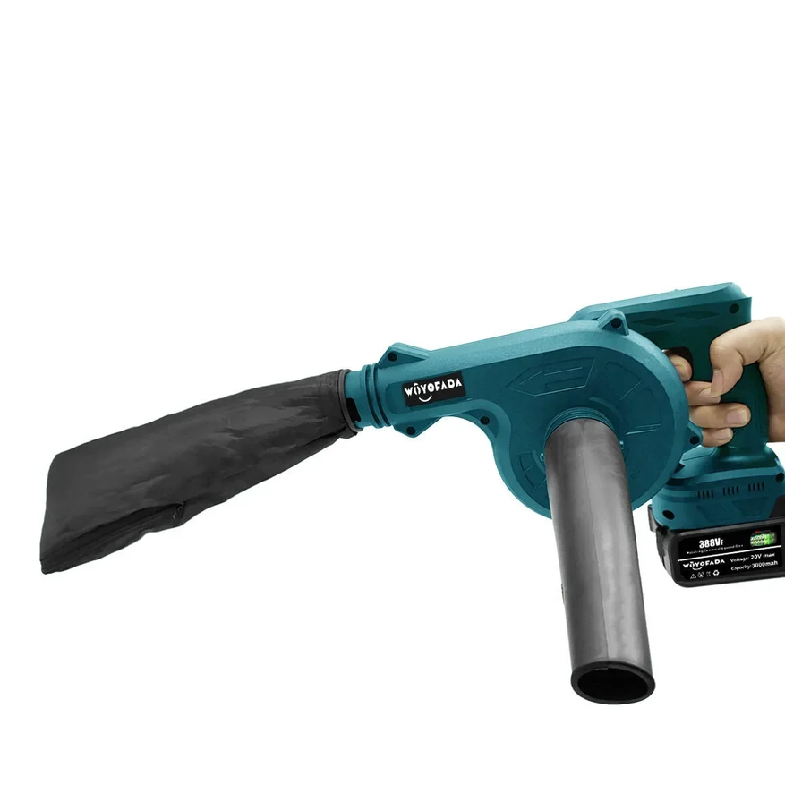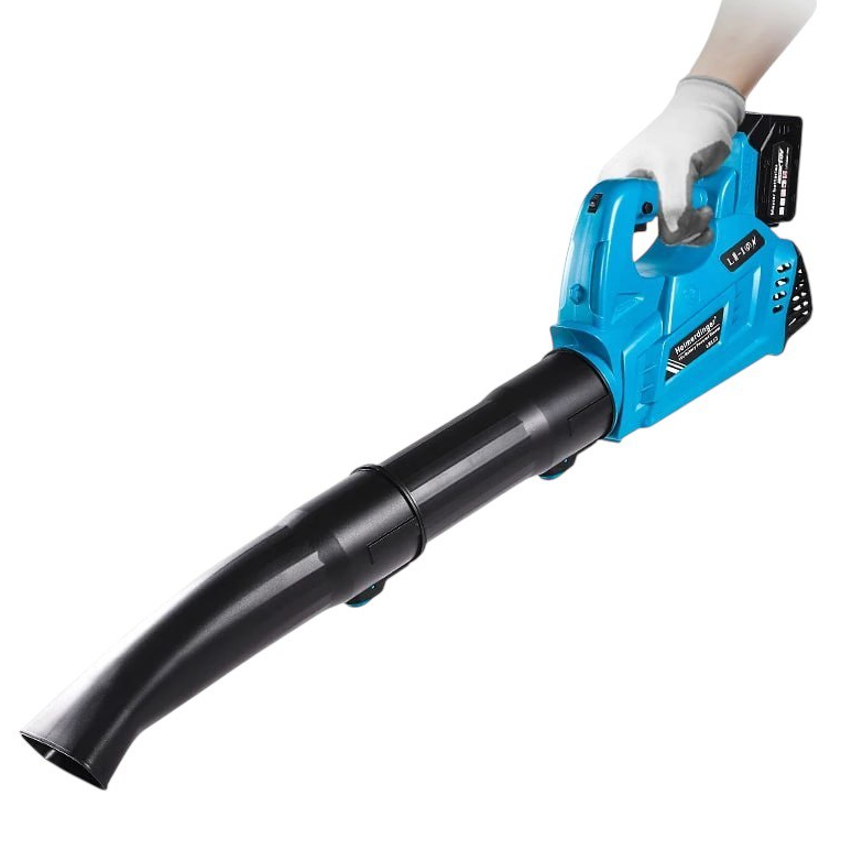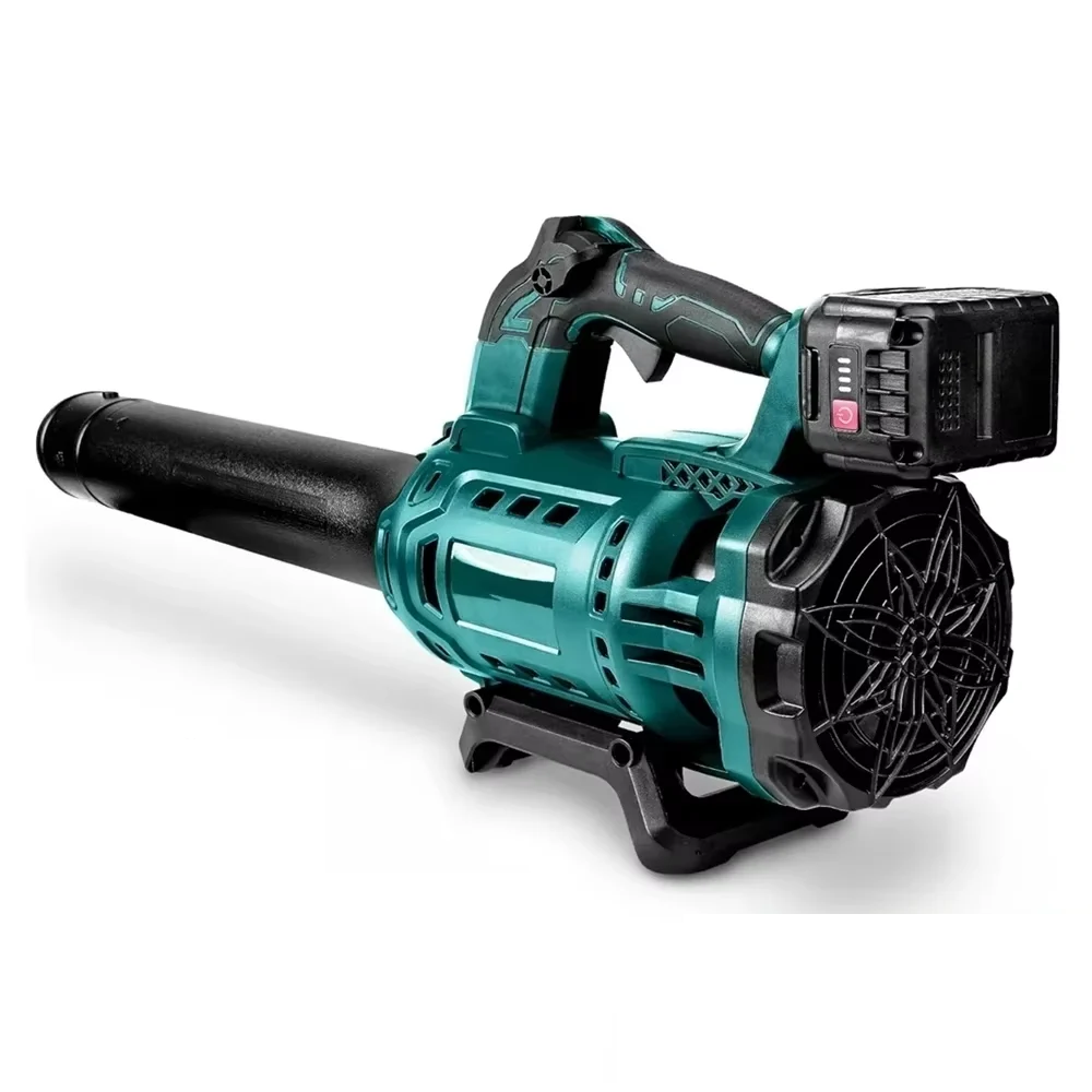 Беспроводная воздуходувка с бесщеточным двигателем, работающая от аккумуляторов 18 В (совместима с батареями Makita). Номинальная мощность устройства 4000 Вт, в комплекте могут идти либо только корпус с двумя насадками, либо полный набор с аккумулятором 18 000 мАч и зарядным устройством. Турбовентилятор обеспечивает мощный поток воздуха, что позволяет эффективно убирать листву, пыль и мусор на улице или в мастерской. Конструкция легкая, весь комплект около 2,5 кг, корпус прочный, а благодаря бесщеточному мотору, увеличивается срок службы и снижается износ.