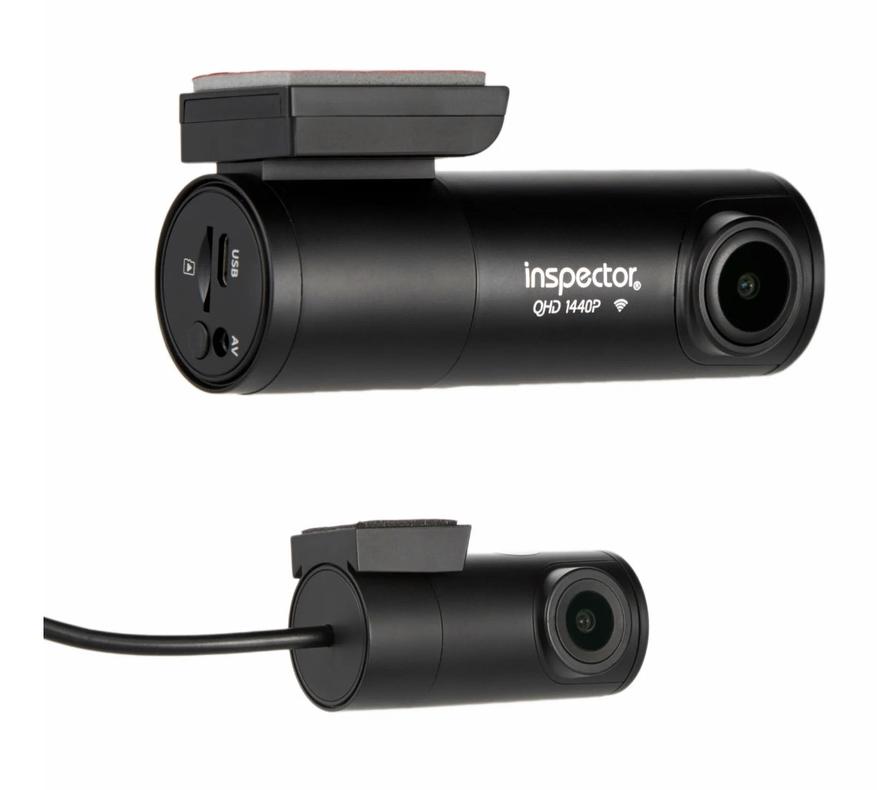 INSPECTOR QHD Murena GPS — видеорегистратор с двумя камерами. Основная камера оборудована 4-мегапиксельной матрицей Sony IMX307, что позволяет писать видео в 2К разрешении, а задняя камера с 2-мегапиксельной матрицей OmniVision+ пишет видео в Full HD разрешении. В данной модели имеется датчик GPS, который позволяет записывать координаты.