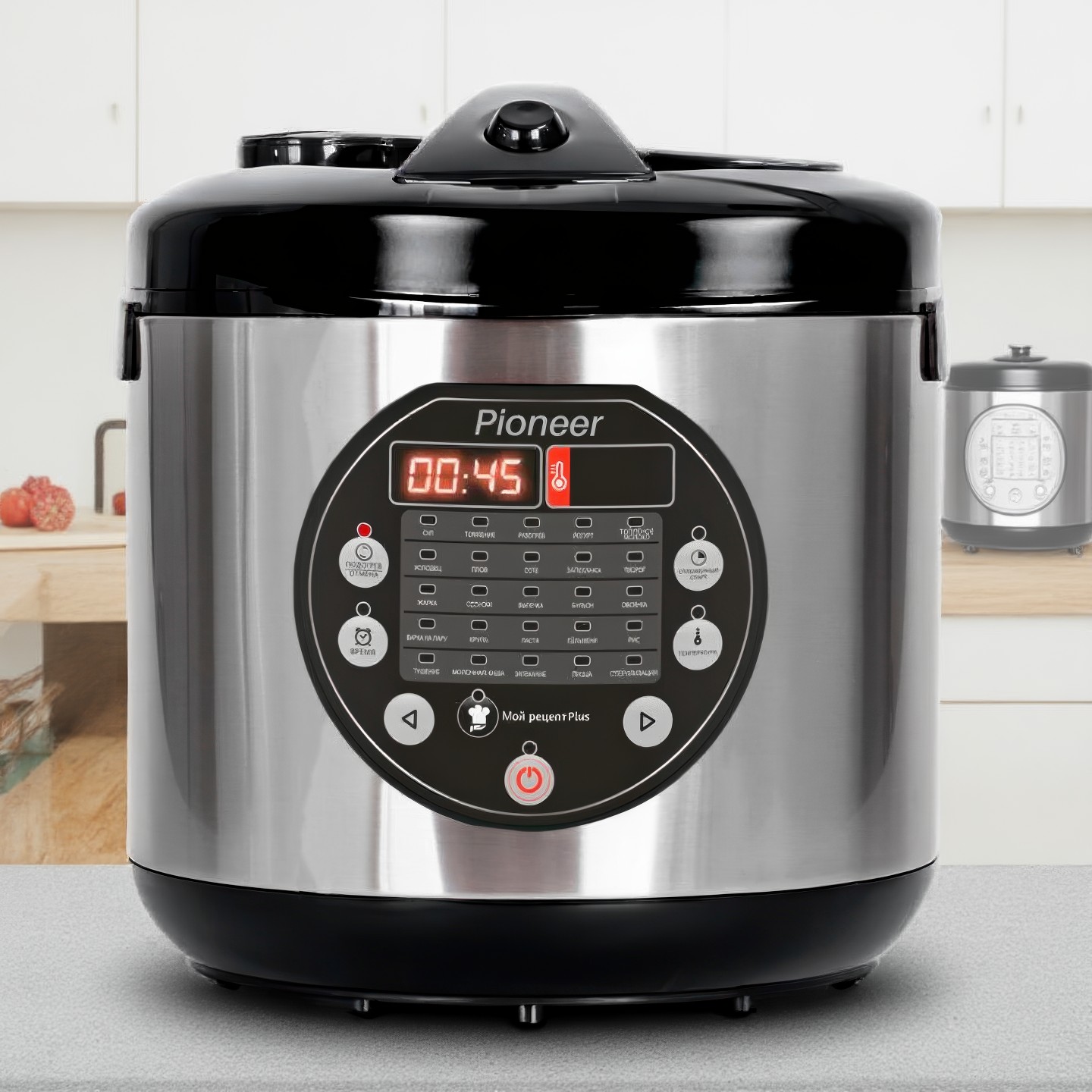 Инженеры из Pioneer при создании этой мультиварки на 860 Вт явно оглядывались на Endever, но решили, что управление можно упростить ещё больше. Как это можно сделать без возвращения ко вложенным меню? Правильно, убрав с «пульта управления космолётом» ненужные большинству функции, оставив только основные режимы. В результате получился чистый, не перегруженный интерфейс с самыми востребованными программами приготовления.