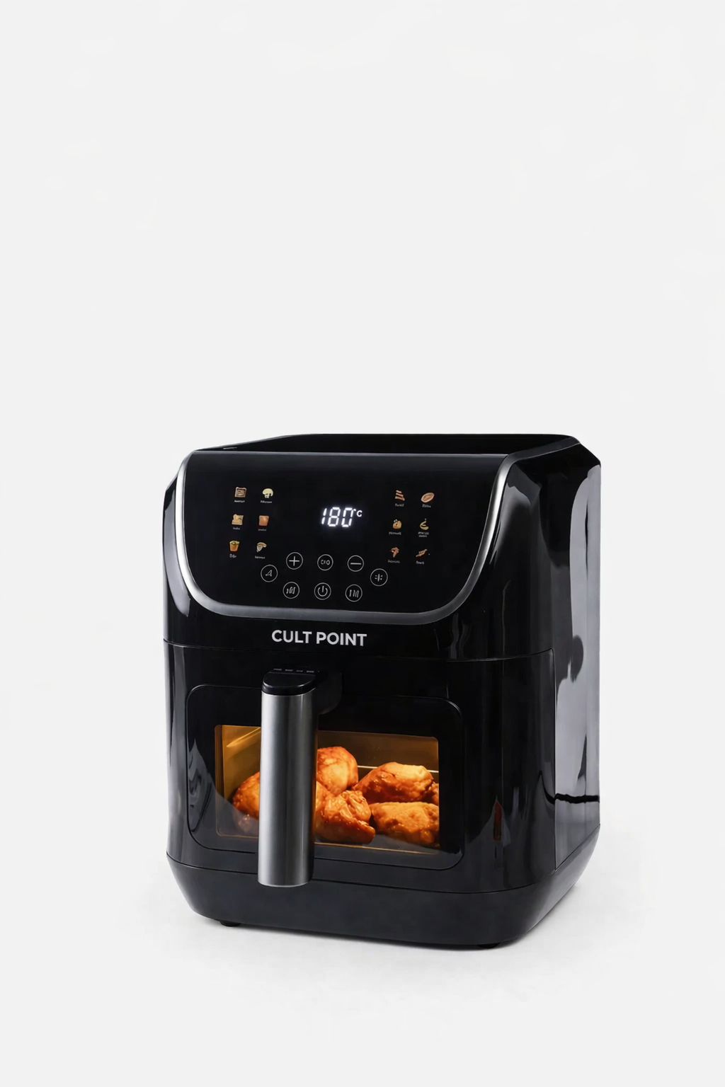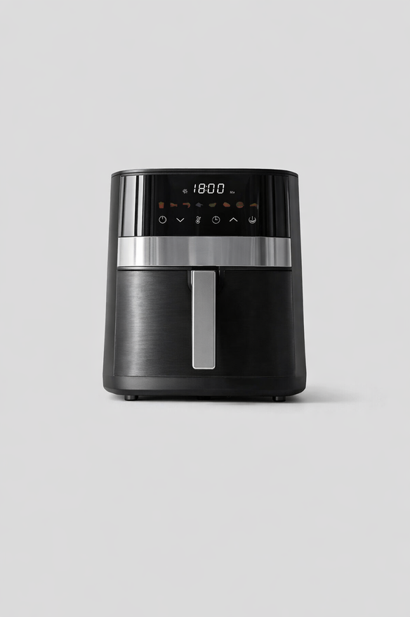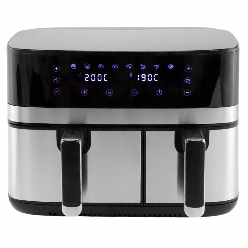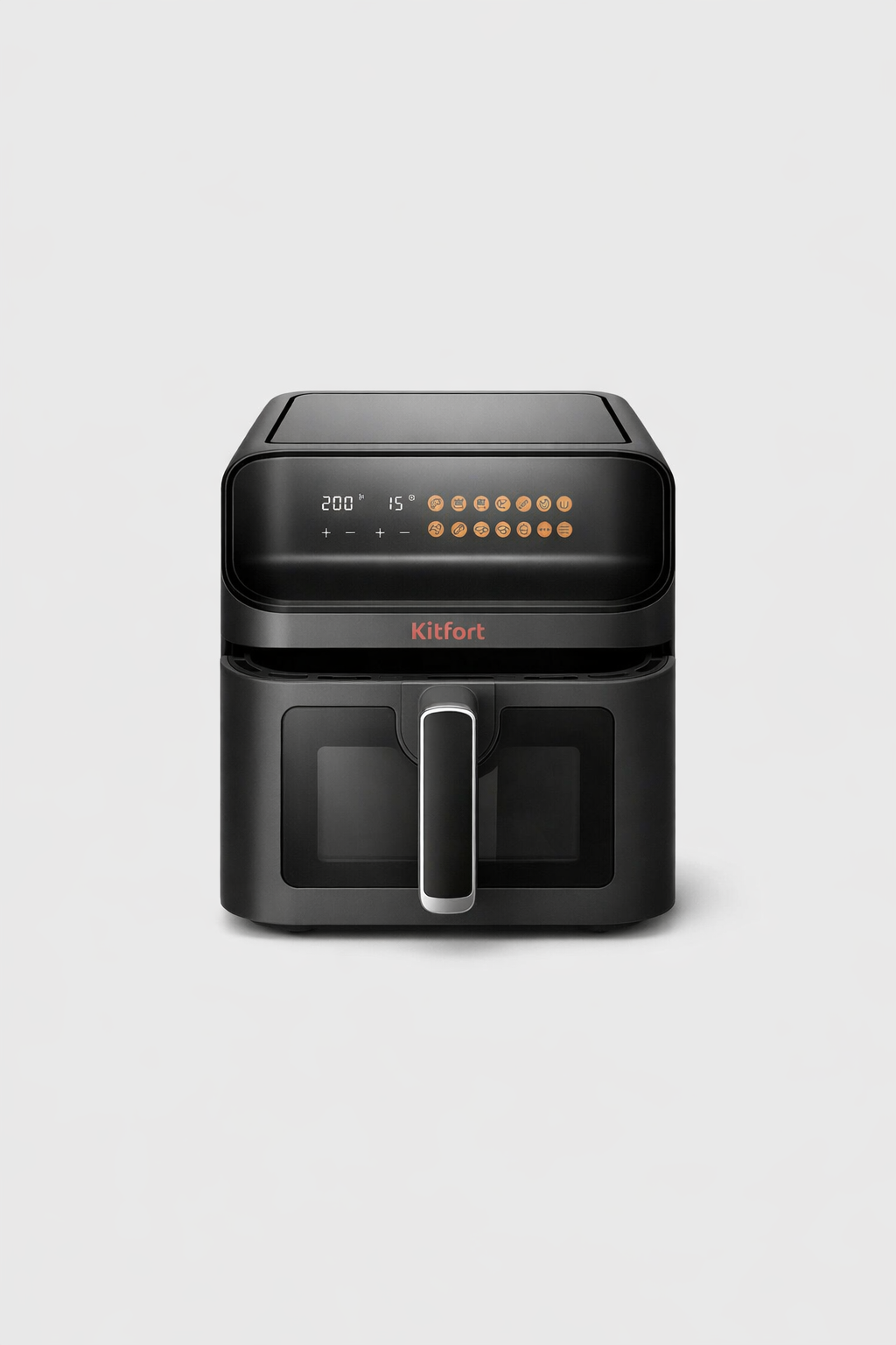Общая вместимость достигает внушительных 9 литров. Жар настраивается от 80 до 200 °C, причем за точность отвечает продвинутый NTC-датчик индукционного типа, превосходящий классические термостаты. Опция поддержания температуры не даст ужину остыть до прихода гостей. Безопасность обеспечена встроенной защитой от перегрева и съемным грилем. Дизайн гармонично комбинирует черные элементы и нержавеющую сталь. Доступно 8 режимов (сырники, картошка, выпечка, птица, мясо, креветки и др.).