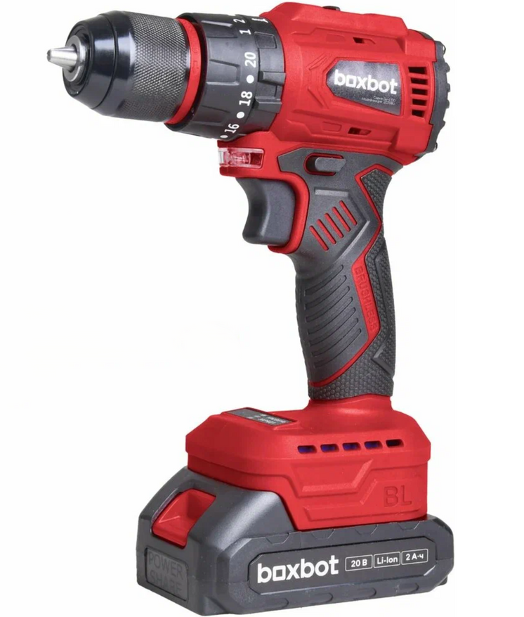 Еще один вариант шуруповёрта от компании BOXBOT. Это инструмент на аккумуляторах на 20В 2Ач и бесщёточном моторе, достигающем крутящего момента до 45Нм. Шуруповерт привычно имеет два варианта скоростей и возможность включать ударный режим. Из удобств отмечу светодиод подсветки рабочей зоны и индикаторы уровня заряда батареи. Патрон быстрозажимной, а в комплекте два аккумулятора, зарядное устройство и пластиковый кейс.