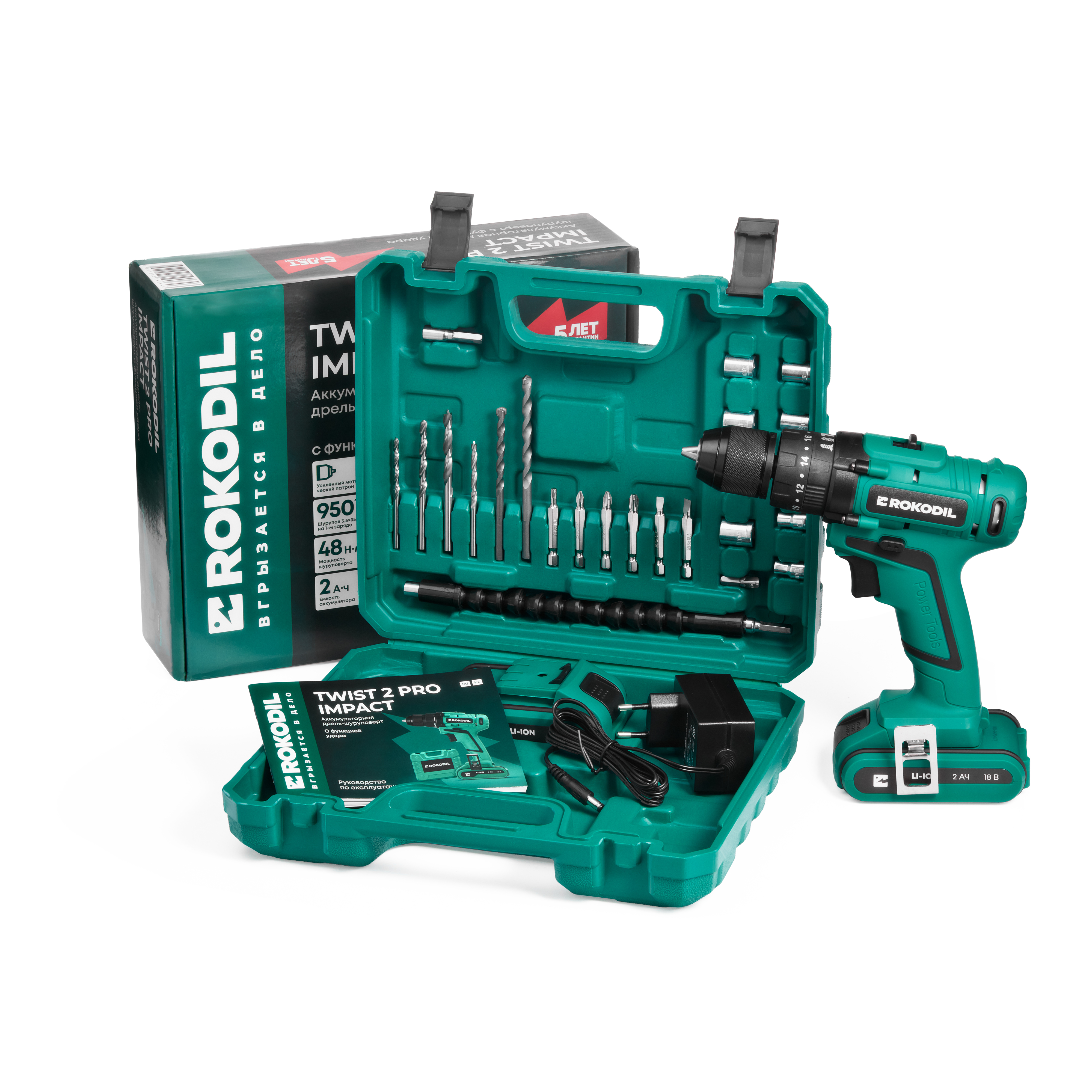 Этот шуруповерт, который также отличается компактными размерами, но уже базируется на 2 аккумуляторах 18В 2Ач 36Вт/ч. Тут также бесщеточный двигатель, но он стал не только мощнее, но и обзавелся ударным режимом, что позволяет сверлить бетонные стены. Такой мотор достигает крутящего момента 48 Нм, чего хватает на вполне серьезные нагрузки. Дополняется такая база удобным корпусом, подсветкой зоны работы, реверсом, блокировкой шпинделя и проверенным временем быстрозажимным патроном. В комплекте 6 бит из стали S2, 6 сверл из стали М2, 9 головок и три разных удлинителя, включая гибкий. Все это в надежном пластиковом кейсе. Автономности хватает на вкручивание более 1000 шурупов размером 3,5х35 мм, зарядка занимает до 90 минут. В обоих случаях фирма дает гарантию 5 лет на свою продукцию.