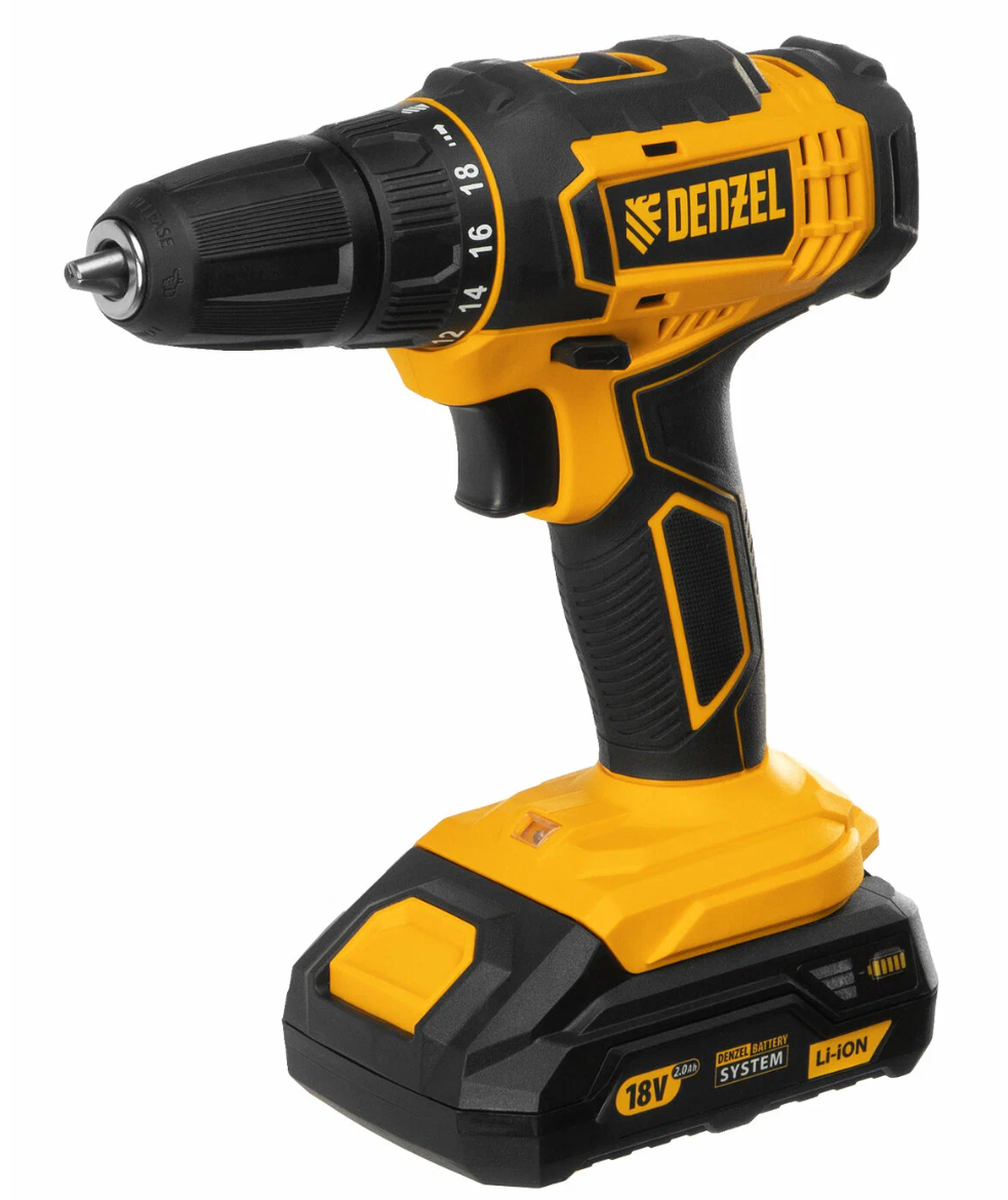 Последнее место в подборке занимает довольно доступный инструмент от компании Denzel. Долговечная конструкция с металлическими шестернями и ударопрочный корпус дополняют подсветка рабочей зоны и прорезиненная рукоятка. Аккумуляторы единой системы Denzel Battery System 18V на 2Ач дают неплохой запас для работы, а крутящий момент 30 Нм очень неплох для компактных размеров корпуса и веса всего 1.2 кг. Удобство транспортировки и хранения обеспечивает комплектный пластиковый кейс.