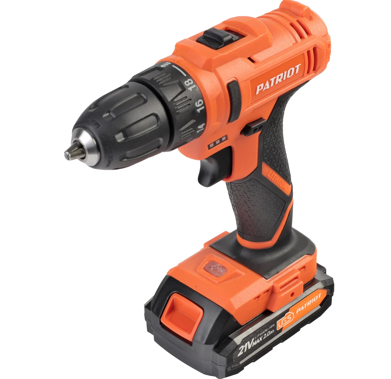 Компания Patriot также выпускает подобные инструменты. Эта модель шуруповёрта на щеточном двигателе, тем не менее её смогли сделать компактной. Аккумуляторы на 21В, 2Ач, а крутящий момент до 29Нм. Модель обладает прорезиненной рукояткой, есть подсветка зоны сверления и два скоростных режима работы. У этой модели нет ударного режима и используется проверенный быстрозажимной патрон с блокировкой шпинделя. В комплектном пластиковом кейсе лежат два аккумулятора и зарядка. Выделяет его единая аккумуляторная платформа для инструментов этой компании.