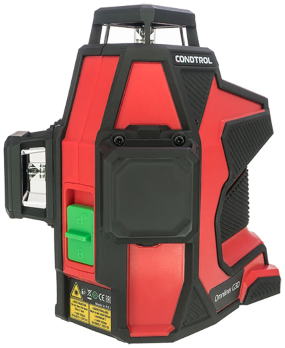 Лазерный нивелир необычного дизайна от CONDTROL (такая геометрия расположения излучателей позволяет работать в углах стен). Omniliner G3D проецирует три луча 520 нм на расстояние до 40 м (есть импульсный режим для большей дальности работы). Прибор может проецировать плоскости не только после самовыравнивания, но и с заблокированным компенсатором (под произвольным углом). Точность 0,2 мм на 1 метр.