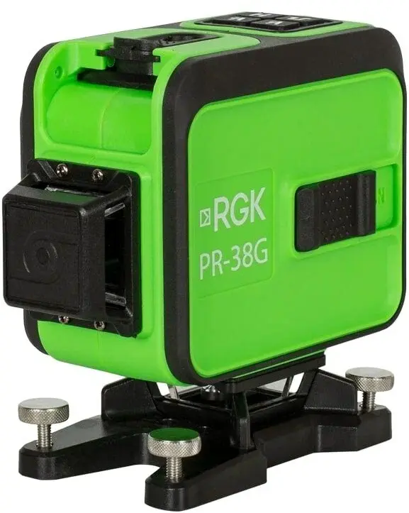 Завершает подборку лазерных нивелиров с зеленым лучом — модель PR-38G от компании производителя измерительных приборов RGK (офис РФ, производство Китай).