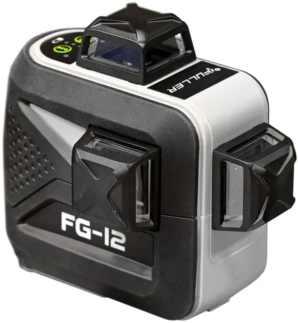 Еще один китайский бренд. Модель на 12 линий с перекрестиями на полу и потолке от FULLER. Лазерный уровень FG-12 оснащен японскими излучателями с длиной волны 515 нм, проекция сохраняет видимость на расстояние до 30 метров. Заявленная погрешность на уровне остальных моделей. Есть мишень для работы на улице до 60 м.