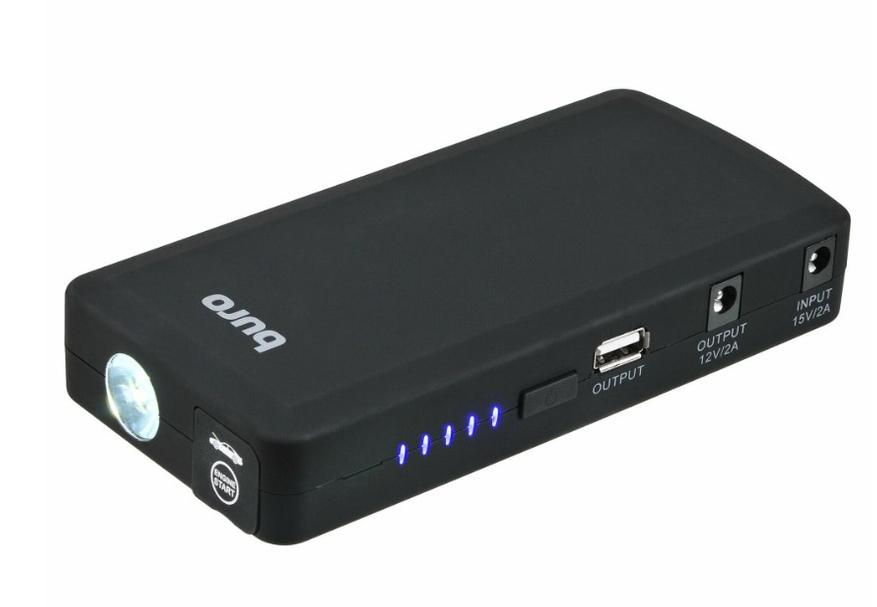 Power bank с функцией запуска автомобиля, в случае его просадки, комплектуется клеммами для подключения к автомобилю и USB-кабелем. Внешнее устройство напоминает Power Bank. Размеры составляют 14х8х2 сантиметра, вес — около 230 граммов.