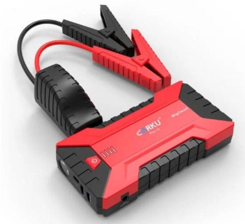Мощный Powerbank для зарядки телефона, запуска автомобиля и питания устройств с напряжением 12 вольт. Комплектация Carku PRO-10 очень богата, помимо самого устройства включает: чехол для транспортировки, клеммы для подключения к АКБ, блок питания, два кабеля: Type-C и обычный USB типоразмера A, а также переходник на гнездо прикуривателя.
