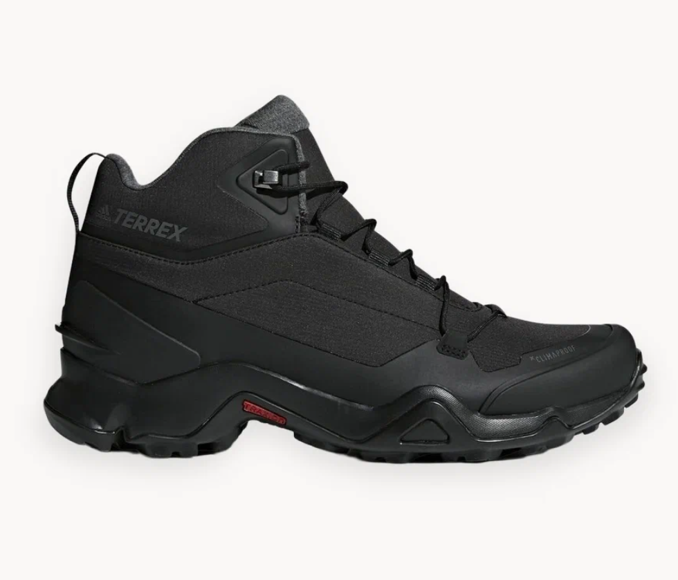 Adidas Terrex Fastshell Mi — утеплённые треккинговые кроссовки с мембраной Gore-Tex и внутренним меховым подкладом. Тепло сохраняется при −15 C и сильном ветре, а влага не проникает внутрь. Подошва Continental обладает высоким сцеплением на снегу, льду и мокрых поверхностях. Высокий голеностоп фиксирует ногу и защищает от снега. Амортизация и прочная конструкция верха позволяют преодолевать большие дистанции без усталости. Верх выполнен из кожи и синтетических элементов — материал выдерживает износ, легко очищается от грязи. Обувь подходит как для поездок в город, так и для походов в природе. При температурах около 0 C может ощущаться перегрев — это особенно заметно в активном движении.