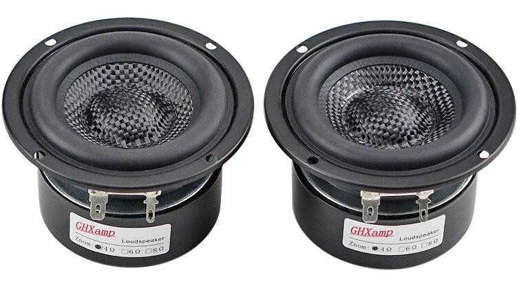 3 дюймовый НЧ динамик от GHXAMP с плетеным стекловолокном в диффузоре и обычно магнитной системой с вентилируемым керном, широкий подвес (резонанс 109 Гц), сопротивление по постоянному току 4 или 8 Ом. Катушка диаметром 20 мм.