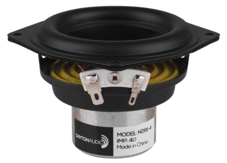 Широкополосной динамик NE95W-04 3″ с мощностью 25 Вт RMS и чувствительностью 86 дБ (на 2,83 В). Диффузор алюминиевый, инвертированный подвес, мощная магнитная система для такого размера. Наружный диаметр корзины 95 мм. Ровная АЧХ до высоких частот, резонанс от 100 Гц, остальные параметры есть в даташите.