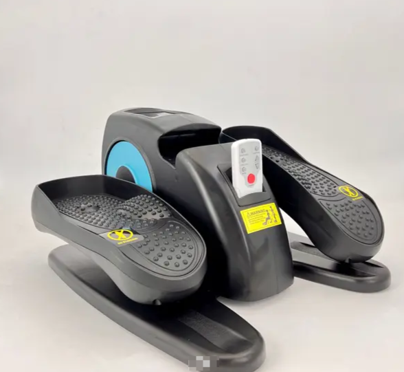 Электрический тренажер для домашних занятий и массажа ног. Подходит для пользователей любого пола. Тренажер оснащён электродвигателем мощностью 50 Вт и поддерживает 12 уровней регулировки скорости. Максимальная допустимая нагрузка — 150 кг. Размер 44,5 x 39 x 22,5 см.