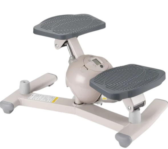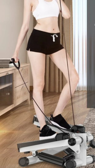 Степпер сочетает шаговый механизм с тянущими эспандерами, что позволяет одновременно тренировать верхнюю и нижнюю часть тела. Тренажер имитирует подъем по лестнице, а динамическое поворотное движение обеспечивает возможность скручивания корпуса из стороны в сторону. Регулярные занятия способствуют тонизации мышц бедер, а также улучшению общей формы ног. Тренажер оснащён светодиодным дисплеем. На дисплее можно отследить количество шагов, сожжённые калории и другие показатели. Цельная конструкция не требует сборки и готова к использованию сразу после распаковки.
