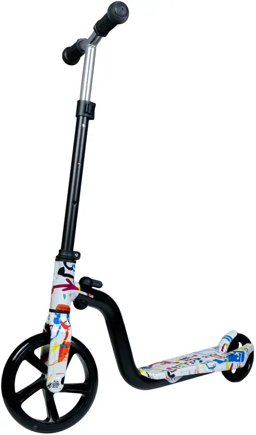 В совокупности это прежде всего позволяет серьезно упростить управление и сделать наиболее комфортным переход ребенка от трехколесного самоката к двухколесному. Также большое переднее колесо само по себе обеспечит комфортный проезд различных препятствий.