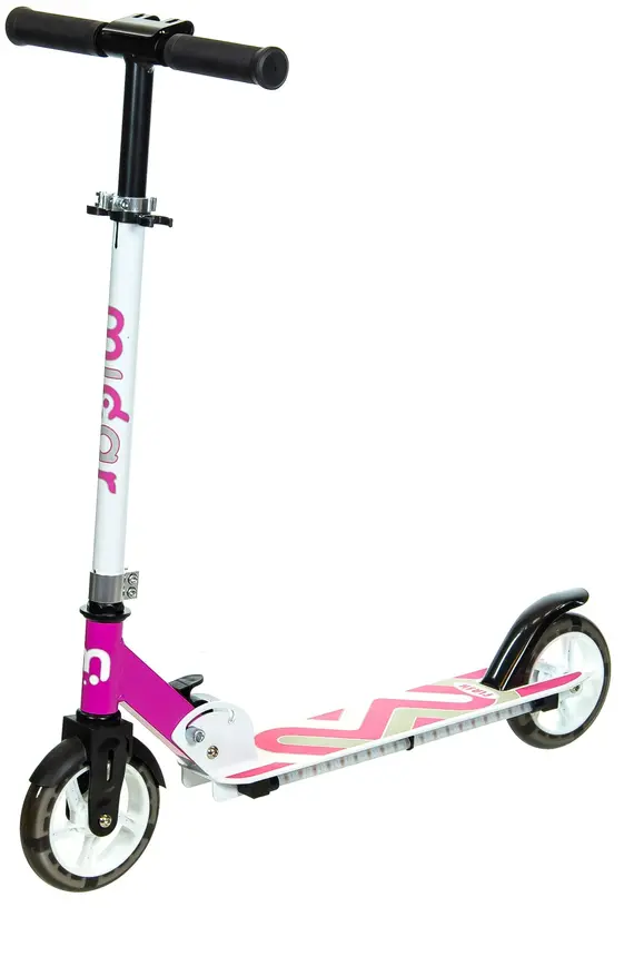 Интересный двухколесный самокат для детей, стоимость составляет примерно 3 500 руб. У модели наблюдается множество положительных отзывов на разных маркетплейсах. Руль можно закрепить на трех уровнях высоты. Самокат по словам производителя подходит для детей на рост от 80 до 120 см, то есть в возрасте от 3-4 лет. Модель складная, впрочем как и другие аппараты в подборке — их удобно перевозить как в общественном транспорте, так и багажнике автомобиля.