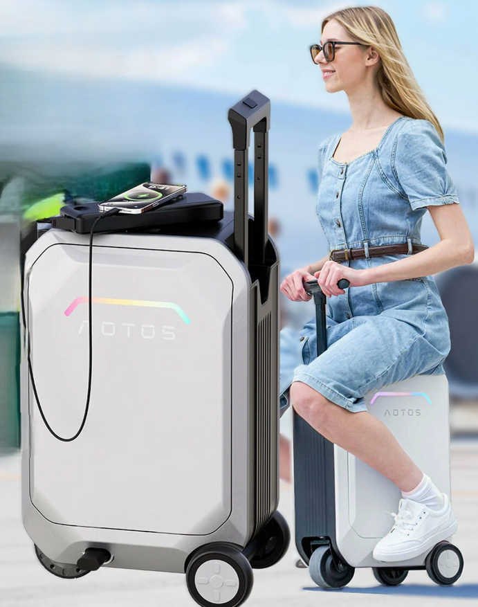 Самокат-чемодан от фирмы AOTOS создан, чтобы комфортно перемещаться и заодно привлекать внимание. Мало того, что вы едете между терминалами на чемодане, совсем не прикладывая усилий, так еще он радует заметной RGB подсветкой. Размер чемодана 20 дюймов, и представлен он в двух цветах. Объем чемодана 31 литр и размеры 43x32x66 см. Он допускается к авиа перелетам, так как его мощность аккумулятора 90Вт/ч и он съемный. В отзывах уже есть счастливый обладатель. Управление параметрами самоката происходит через приложение и, разумеется, чемодан может зарядить ваш телефон. Максимальная скорость 10 км/ч, вес 10.8 кг и везет нагрузку до 120 кг.