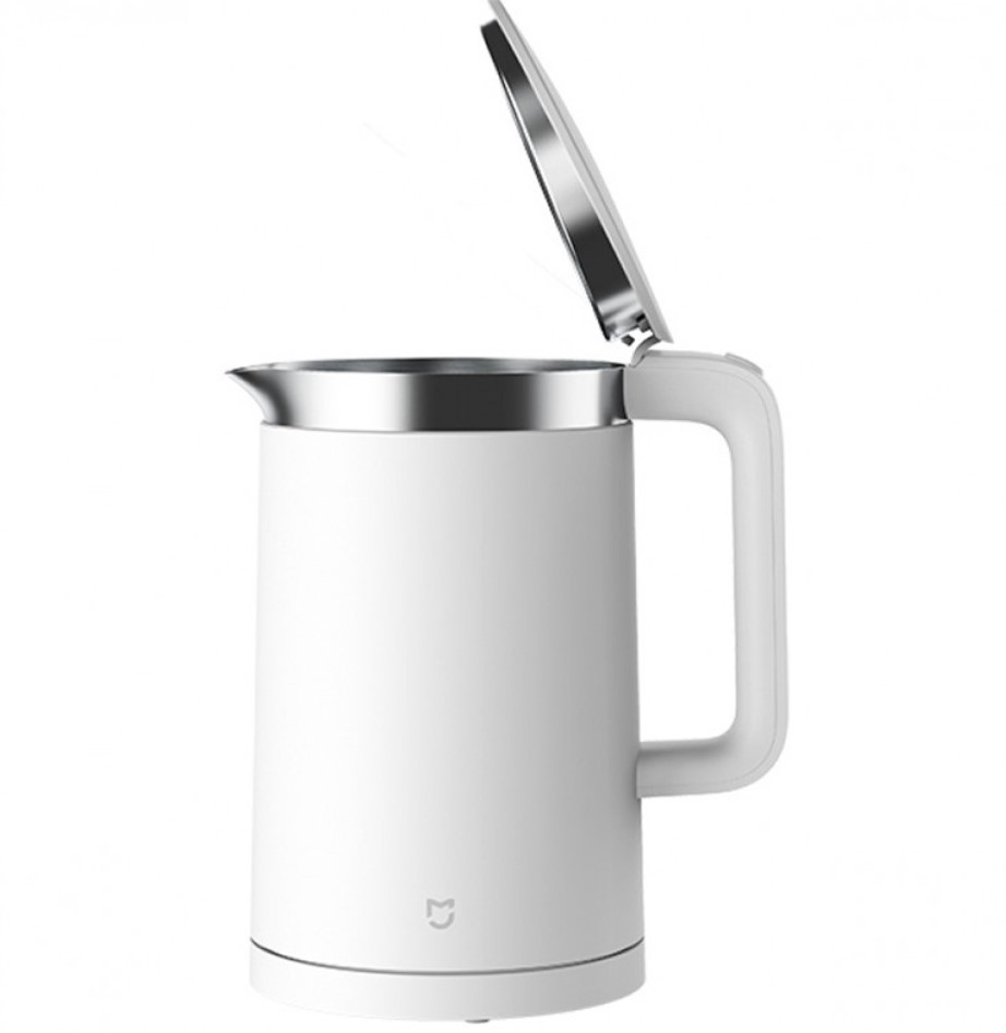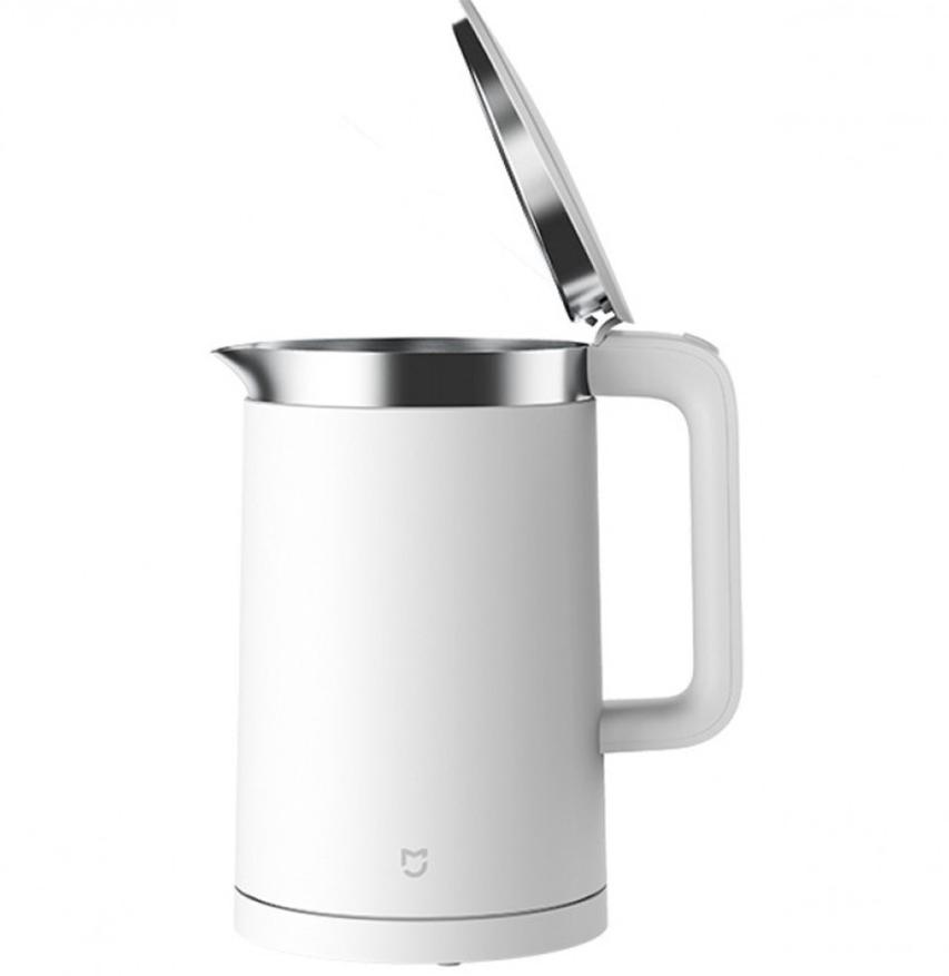 Про этот электрочайник не слышал разве что ленивый. Модель, представленная на площадке Xiaomi Mijia, выполненная в фирменном белоснежно белом цвете и с IoT-функциями. Колба выполнена из нержавеющей стали, снаружи — термостойкий пластик. Есть и минусы — колба сплошная и нет окошка для контроля уровня воды. Для того чтобы посмотреть, сколько же осталось воды, нужно открыть откидную крышку и заглянуть внутрь. Увы, но для некоторых людей это действительно неудобно и занимает дополнительное время. Зато такой чайник можно подогреть или вскипятить удаленно — для управления используется оригинальное приложение Xiaomi Mi Home, есть возможность управления голосом через умные колонки.