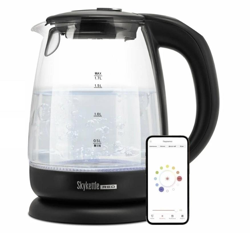 Лично я иногда путаю бренд RED SOLUTION с брендом REDMOND. В случае электрочайников совпадает даже внешний вид и наименование продуктовой линейки — SkyKettle. В частности, для управления SkyKettle RK-G210S можно использовать смартфон с установленным приложением для удаленного доступа. Колба чайника выполнена из закаленного стекла, присутствуют пластиковые элементы корпуса. Из очевидных плюсов — отмечу возможность управления голосом через умные колонки. В приложении можно установить температуру или активировать подогрев.