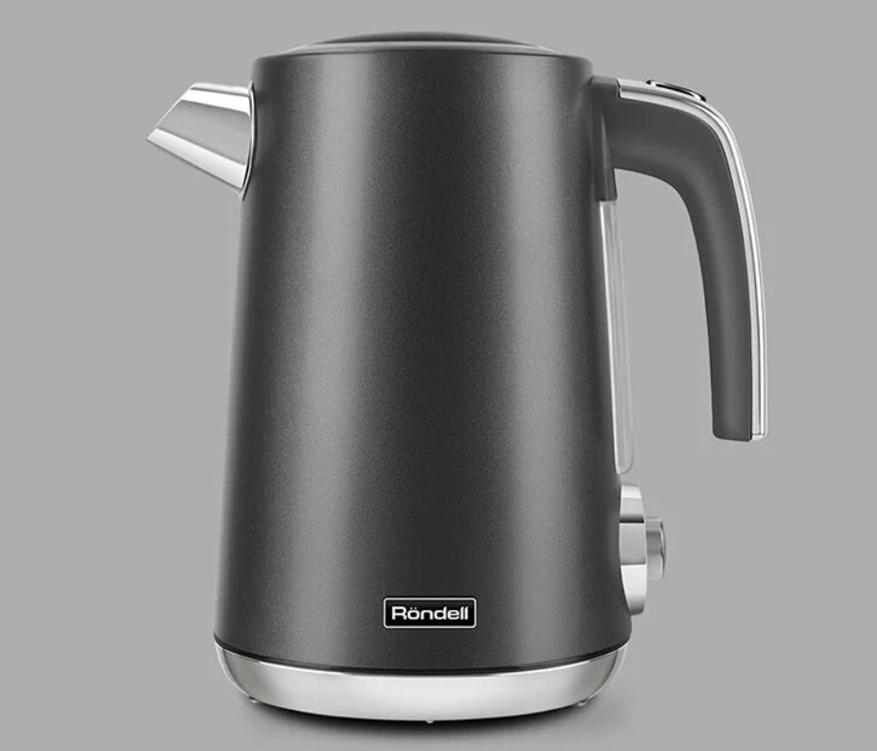 Эта модель приглянулась своим неброским дизайном. Электрочайник Rondell RDE-1002 представлен в серо-стальном цвете корпуса с элементами из нержавеющей стали. Колба внутри, кстати, тоже выполнена из нержавеющей стали. Крышка пластиковая с откидным механизмом. Предусмотрен сетчатый фильтр от накипи. Это одна из немногих моделей с цельнометаллической колбой, в которой предусмотрено смотровое окно со шкалой заполнения объема. Отмечу функцию регулировки температуры: от 60 градусов до 100 градусов можно выставить любую температуру с шагом 10 градусов.
