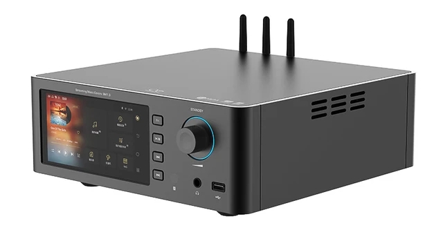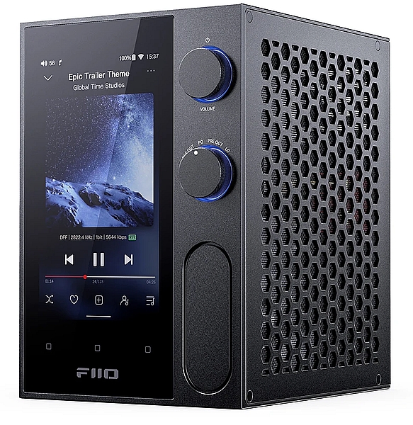 Hi-End плеер в настольном формате от китайского аудио бренда SHANLING. Есть двухдиапазонный WiFi 6 для стриминга, слот для M2 SSD (до 2 ТБ) диска внутри корпуса, чтение форматов MQA, DSD512 и «цифра» 32 бит 768 кГц.