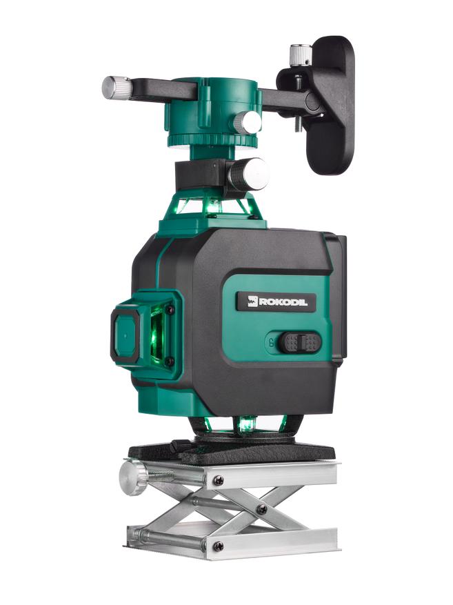 Rokodil Ray Max — это лазерный уровень, предназначенный для быстрой и точной разметки различной сложности. Он проецирует 16 линий на 360°, что обеспечивает разметку во всех плоскостях одновременно. Пересечение лучей создает 10 перекрестий под углом 90° для угловой разметки. Погрешность минимальна, не превышает 0.2 мм/м. Функция автовыравнивания обеспечивает точность, а при превышении угла в 5° подается сигнал. Ее можно отключить для диагональной разметки. Отличительной чертой Rokodil Ray Max является проекция нижнего горизонтального луча. Инструмент позволяет выполнять точную разметку на уровне пола — без подставок, лишних замеров или сложных ухищрений. Это существенно упрощает укладку плитки, монтаж плинтусов, наливных полов и других низко расположенных конструкций. Уровень работает в радиусе до 30 метров, а также поддерживает приемник. В Rokodil Ray Max используются японские излучатели SHARP, создающие видимые зеленые лучи. Интенсивность луча регулируется. Время автономной работы — более 10 часов, возможна работа от сети. Корпус выполнен из прочного пластика с резиновыми накладками. Степень защиты IP54 обеспечивает устойчивость к пыли и влаге. Гарантия производителя 5 лет.