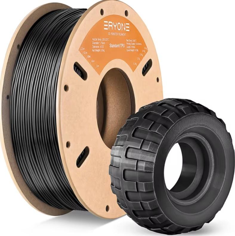 Эластичный пластик типа TPU для печати мягких поверхностей и эластичных моделей. Твердость такого пластика составляет 95A (единиц) по Шору. Вполне подойдет для печати чехлов на смартфоны или легкой летней обуви. Обратите внимание, адгезии TPU к PLA/PETG нет, но можно использовать в паре с ABS-пластиком.