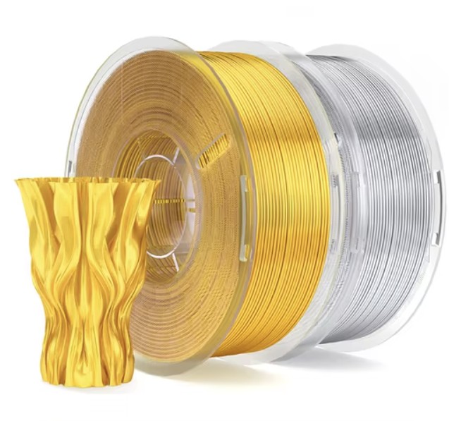 Сразу скажу, этот пластик люблю, особенно с «металлическими» оттенками. Такими как золотистый/серебристый. Этот пластик не просто придает определенную фактуру вашей модели, но и добавляет блеск поверхности. Печатать можно обычным PLA-профилем, так как у данного вида расходников аналогичные параметры, но из-за добавок в филамент имеет смысл чуть снизить скорость печати.