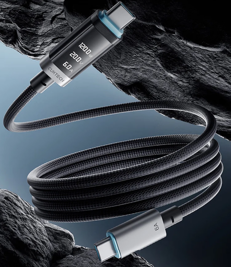 Кабель стандарта PD 3.1 (240 Вт), ориентированный на работу с Thunderbolt 5 и USB4 Gen4. В ходе испытаний подтвердил пропускную способность до 80 Гбит/с. Оборудован чипом E-marker; внутреннее сопротивление составляет 94 мОм. Подходит для вывода видеосигнала на мониторы и работы под постоянной высокой нагрузкой с минимальным нагревом. Ознакомиться с обзором.