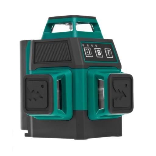 Устройство относится к профессиональным измерительным инструментам. Оно может проецировать 12 линий на 360° и формировать 6 перекрестий. При такой разметке работать могут сразу несколько мастеров одновременно. Точность уровня высока — погрешность на 10 метров менее 2 мм. Компенсатор положения корпуса самостоятельно выравнивает уровень (+/-5°).