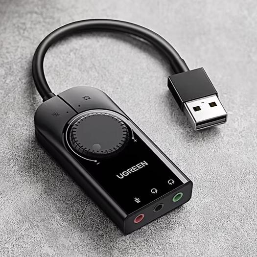 Открывает подборку внешних звуковых карт вариант от бренда UGREEN. Модель CM129 имеет размеры пластикового корпуса 74x34x15.5 мм, кабель USB (не особо гибкий) длиной 15 см. Аппаратная платформа: чип аудиоконтроллера SSS1629, отношение С/Ш 85 дБ, 24bit/96KHz. Звук не хуже типового встроенного.
