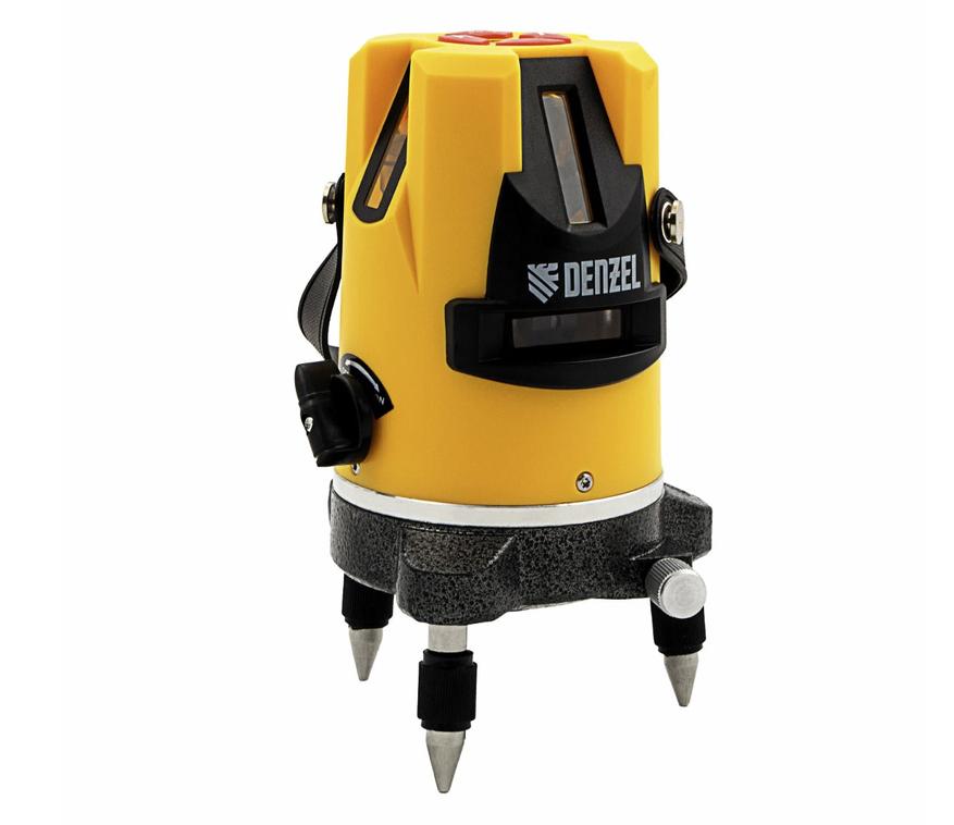 Denzel LX3 — пожалуй, самая простая модель в этой подборке. Однако, она не лишена функциональности и при этом имеет довольно привлекательную цену. В качестве источника питания можно использовать элементы питания типа АА или подключение к электросети сети. На мой взгляд, эта модель — в первую очередь — предназначена при укладке напольных покрытий. Она поставляется с завода с несъемной треногой, высоту которой можно регулировать. Если у вас возникнут другие задачи, то вы сможете установить Denzel LX3 на штатив, благодаря резьбе 5⁄8.Лазерный уровень Denzel LX3 проецирует до четырёх вертикальных линий и одну горизонтальную, используя красные лучи. Точность построения составляет не более 0,3 миллиметра на 1 м, а угол самовыравнивания — 3. Гарантию на этот инструмент в 3 года.