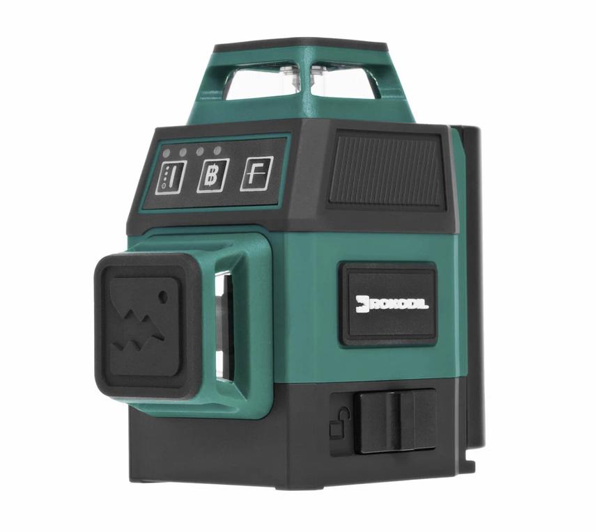 Rokodil Ray Air — это небольшой и легкий лазерный уровень, который хорошо себя зарекомендовал во всех типах работ, которые мне доводилось производить. Особенно мне понравилось с ним работать на высотных и монтажных работах. Его размеры составляют 90 х 70 х 90 миллиметров, а вес — всего 380 грамм. Лазерный уровень работает от литий-ионного аккумулятора, ёмкостью 4800 мАч. С таким аккумулятором устройство может работать до 60 часов без подзарядки. Если аккумулятор разрядился, но вам необходимо продолжить работу, вы можете подключить его к электросети или повербанку с помощью специального зарядного устройства и кабеля USB-A/Type-C.На корпусе Rokodil Ray Air есть резьба 1/4 дюйма для крепления к штативу. В случае если нужно зафиксировать нивелир в труднодоступном месте, в комплекте предусмотрен кронштейн — прищепка, который можно закрепить на трубе, либо прикрутить к стене. Опасаться за выход из строя Rokodil Ray Air с небольшой высоты не стоит, так в его корпусе применяются прочные материалы и обрезинка, что способствует устойчивости при падении и защите от ударов. В Rokodil Ray Air предусмотрено три лазерных излучателя с зеленым лучом: два для вертикальных плоскостей и один для горизонтальных. Они позволяют проецировать до 12 линий с полным углом обзора в 360 градусов. В приборе есть шесть перекрестий под углом 90, что также способствует более точной работе. Яркость луча можно отрегулировать в трех режимах. Если нужно построить наклонные линии, то имеется функция «блокировка маятника». Погрешность при построении не превышает 0,2 миллиметра на метр. Инструмент обладает функцией самовыравнивания с углом наклона до 5 градусов. Производитель предоставляет гарантию на свою продукцию в течение 5 лет.