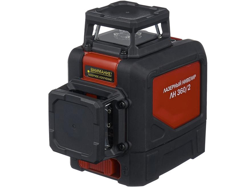 Лазерный уровень Elitech ЛН 360/2 выполнен в небольших габаритах: 164 х148 х 130 мм. Вес устройства равен 360 грамм. Как можно понять из названия этой модели, Elitech ЛН 360/2 имеет два лазерных излучателя, которые проецируют по 4 линии в горизонтальной и вертикальной плоскостях, с углом развертки в 360. Четыре перекрестия, расположенные под углом в 90, будут полезны при выполнении точных работ. Погрешность при построении не превышает 0,2 миллиметра на метр. Инструмент обладает функцией самовыравнивания с углом наклона до 4. Управление Elitech ЛН 360/2 происходит с помощью одной кнопки. В качестве питания используются 4 элемента питания, типа АА, мощностью 1.5В, которых хватит до 12 часов использования. На корпусе Elitech ЛН 360/2 есть резьба 1/4 дюйма для крепления к штативу. В комплекте также есть кронштейн-прищепка, который можно закрепить на трубе для фиксации уровня в труднодоступных местах. Благодаря прочному корпусу и резиновому покрытию, уровень устойчив к падениям и ударам, даже с небольшой высоты.