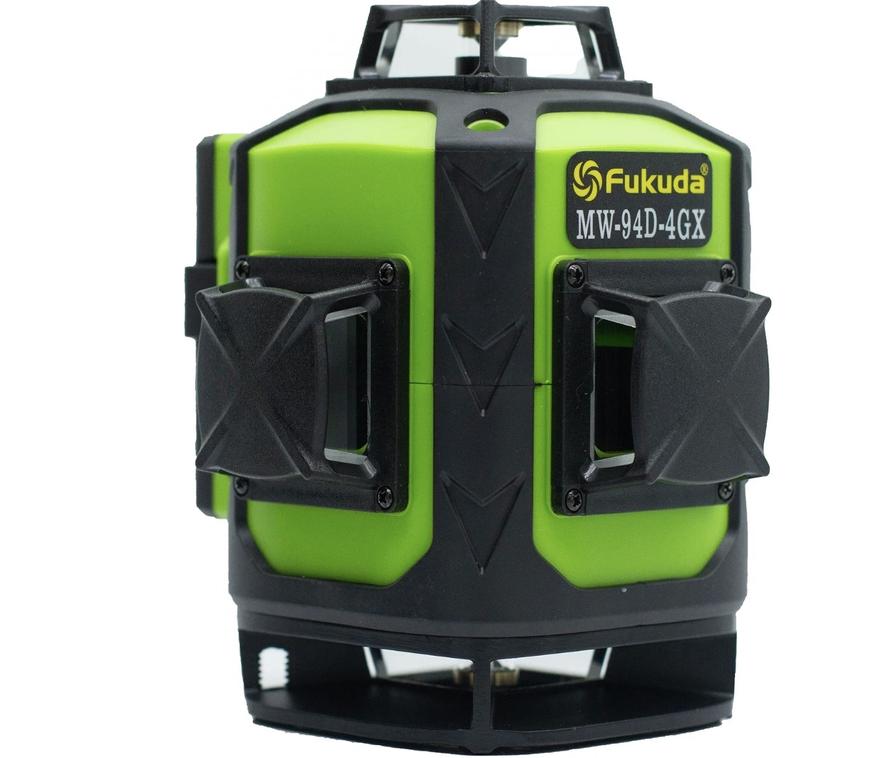 На самом деле ассортимент так называемых «зеленых» лазеров, то есть лазерных нивелиров на базе лазерных диодов с излучением, длину которых можно охарактеризовать цифрой 532 нм («зеленый» спектр) — гораздо больше. И одним из профессиональных вариантов можно назвать модель Fukuda 4D MW-94D-4GX, особенностью которой являются сразу четыре группы излучателей, каждый из которых проецирует на четыре стороны.