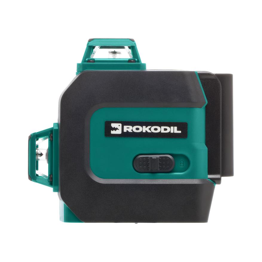 Еще один достойный представитель лазерных нивелиров от бренда Rokodil — это версия Rokodil Ray Pro на базе трех групп излучателей, откалиброванных в заводских условиях. Такой нивелир проецирует 12 линий во все стороны, позволяя получать горизонтальную плоскость, а также две вертикальных плоскости в помещении. Режим самовыравнивания срабатывает при установке в пределах 5 градусов горизонта, а точка отвеса поможет выбрать место для установки. На кнопочной панели предусмотрена клавиша для регулировки яркости: 5 режимов с различной интенсивностью свечения проекции.
