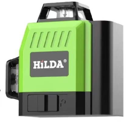 Модель лазерного нивелира с зелеными диодными излучателями от HILDA можно смело называть одной из самых популярных. Шутка ли — более пятидесяти тысяч продаж только в магазине по ссылке. Данный вариант обеспечивает проекцию сразу 12 линий с помощью трех групп излучателей. Из особенностей отмечу возможность фиксации маятника для работы в произвольном положении.