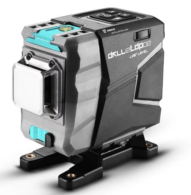 Одной из недорогих и, одновременно, популярных моделей является нивелир DEKO DKLL12tdP02. Основывается данный вариант на базе диодов с излучением 532 нм, то есть — с зелеными лазерами. Отличие данной модели заключается в возможности создать проекцию в виде 3Д линий (12 линий) с помощью трех групп излучателей. К особенностям DKLL12tdP02 отнесу наличие резьбы в подошве основания корпуса нивелира — его можно закрепить практически на любой поверхности.